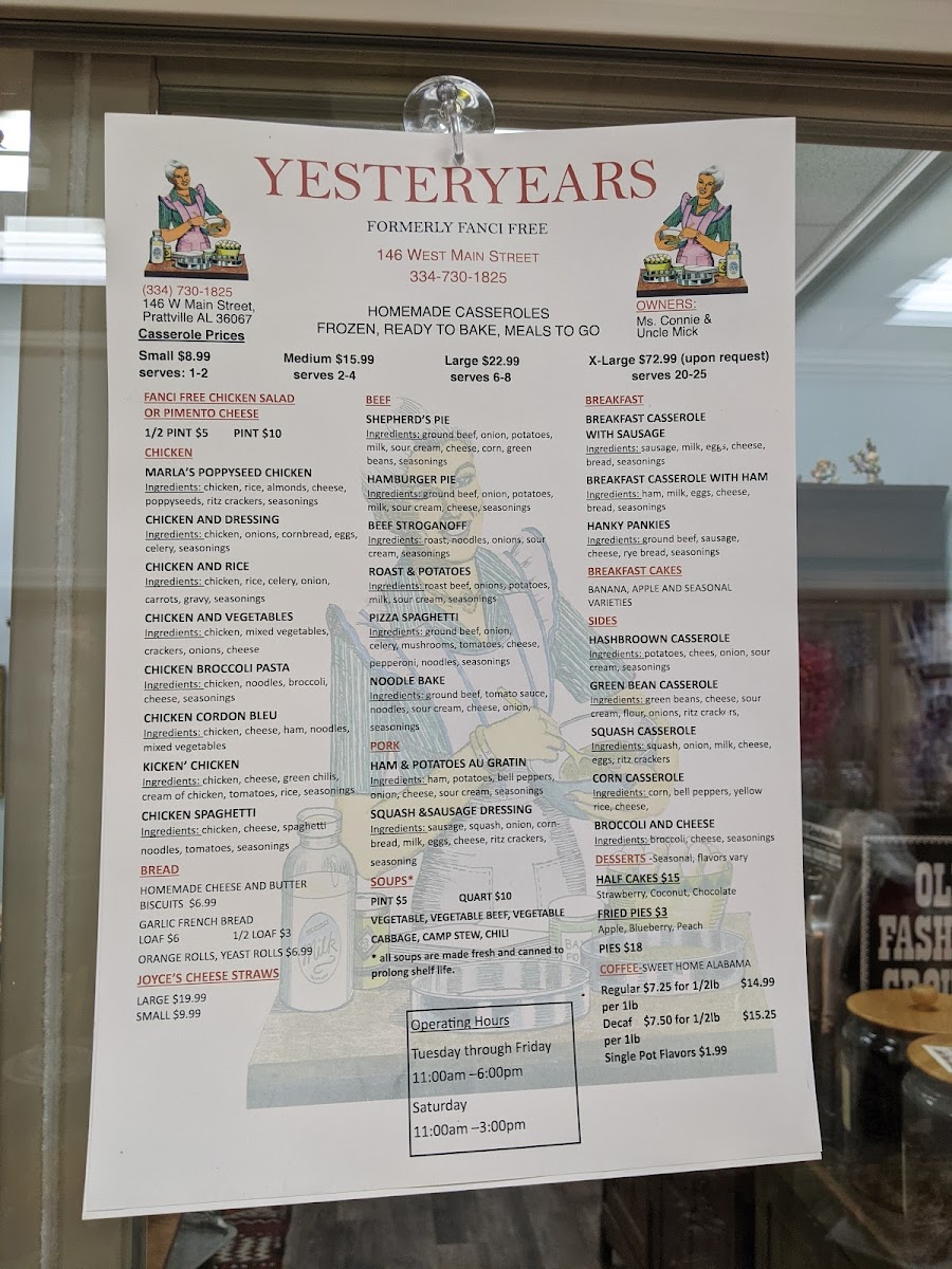 Welcome to the charming world of Yesteryears Homemade Casseroles, a delightful culinary gem nestled in the heart of Prattville, Alabama. Located at 146 W Main St A, this quaint establishment is more than just a restaurant—it's a celebration of nostalgia and comfort food, packaged with a warm, welcoming atmosphere. When you step inside, you are immediately enveloped by the essence of homemade meals, crafted with love and care.